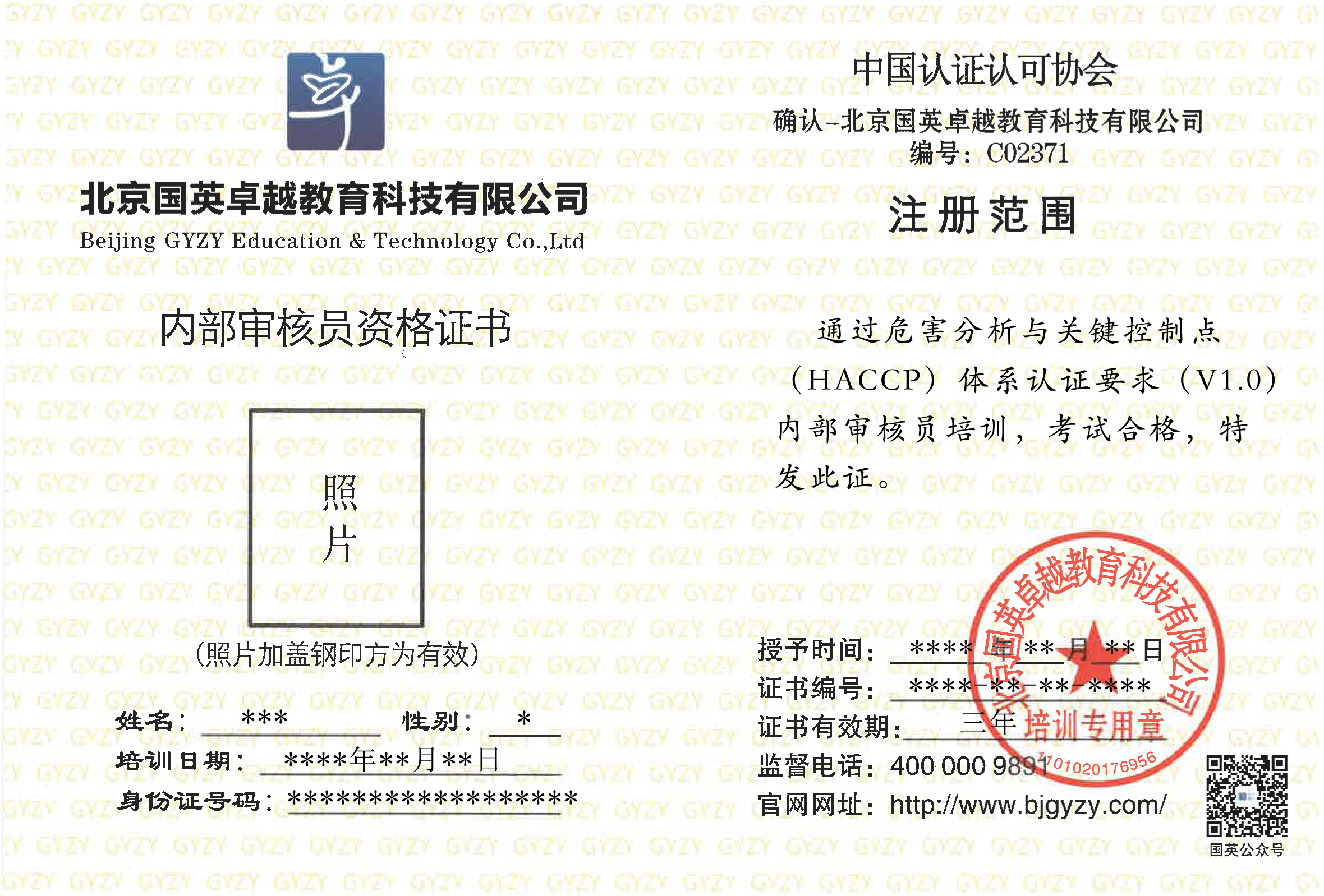 危害分析與關(guān)鍵控制點體系審核員【詳細(xì)】
