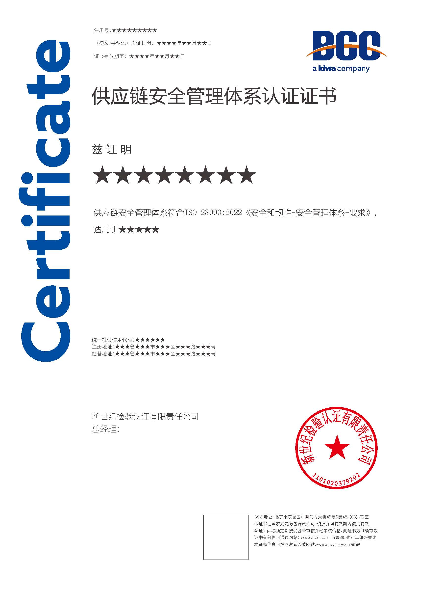 本頁涉及的認(rèn)證服務(wù)中均有對(duì)應(yīng)的《認(rèn)證實(shí)施規(guī)則》,BCC擁有其最終解釋權(quán)。任何組織及個(gè)人未經(jīng)BCC許可,不得以任何形式全部或部分使用(法律要求除外)認(rèn)證相關(guān)信息。如需獲取相關(guān)實(shí)施規(guī)則請(qǐng)用以下方式聯(lián)系獲?。弘娫挘?10-58579316 郵箱:fwjs@kiwa.cn