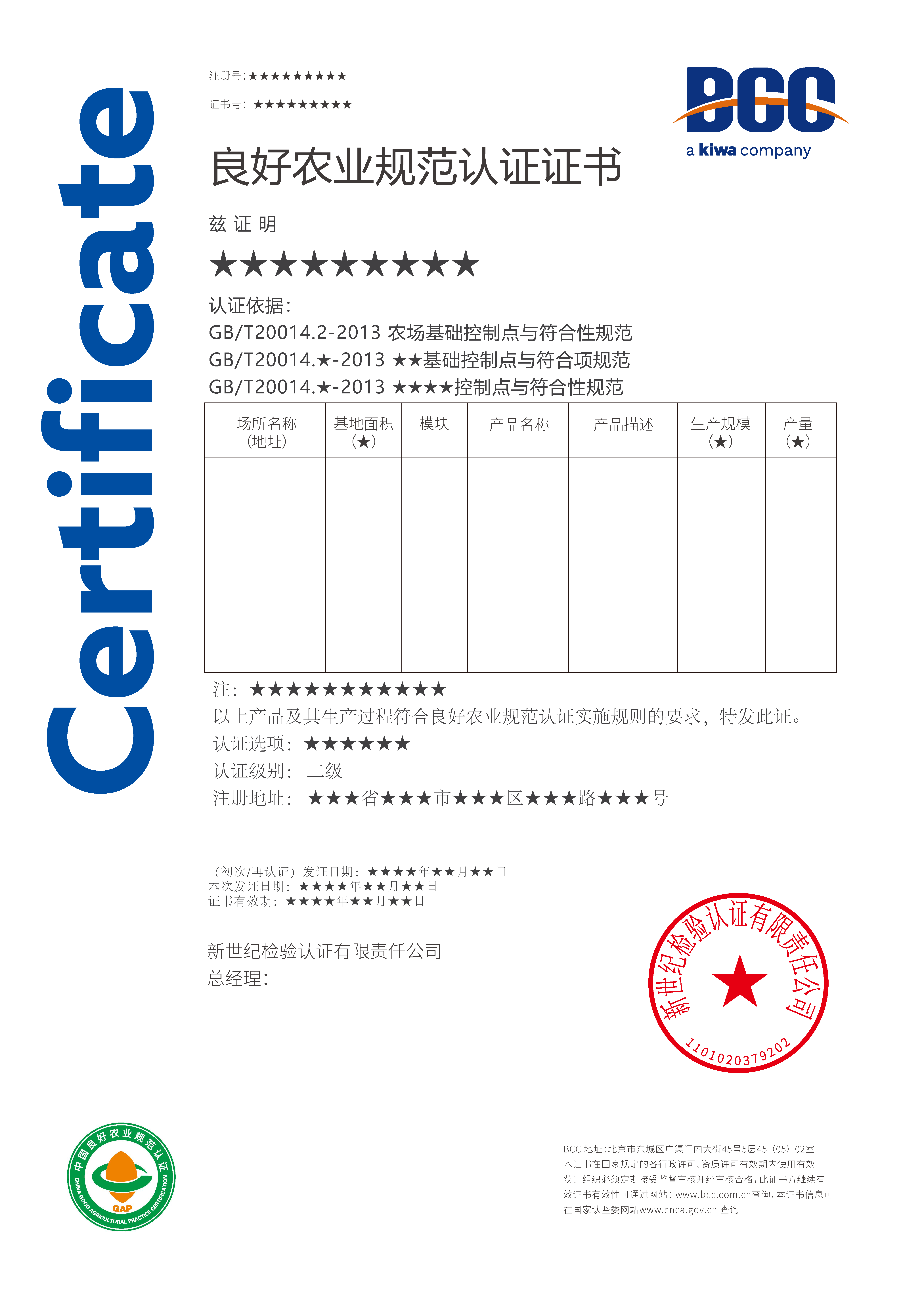 1、GAP認(rèn)證申請書;
