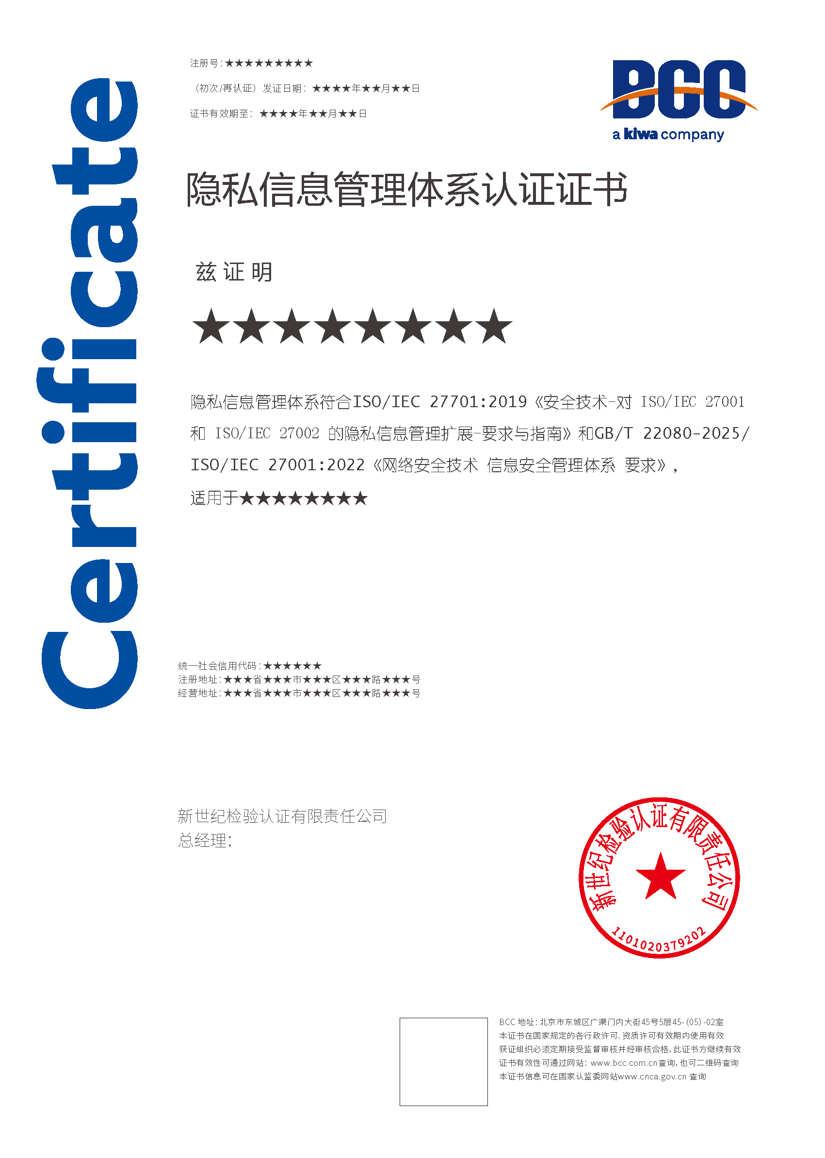 - 2020-06-24 首張 ISO27701 隱私信息管理體系證書發(fā)出!