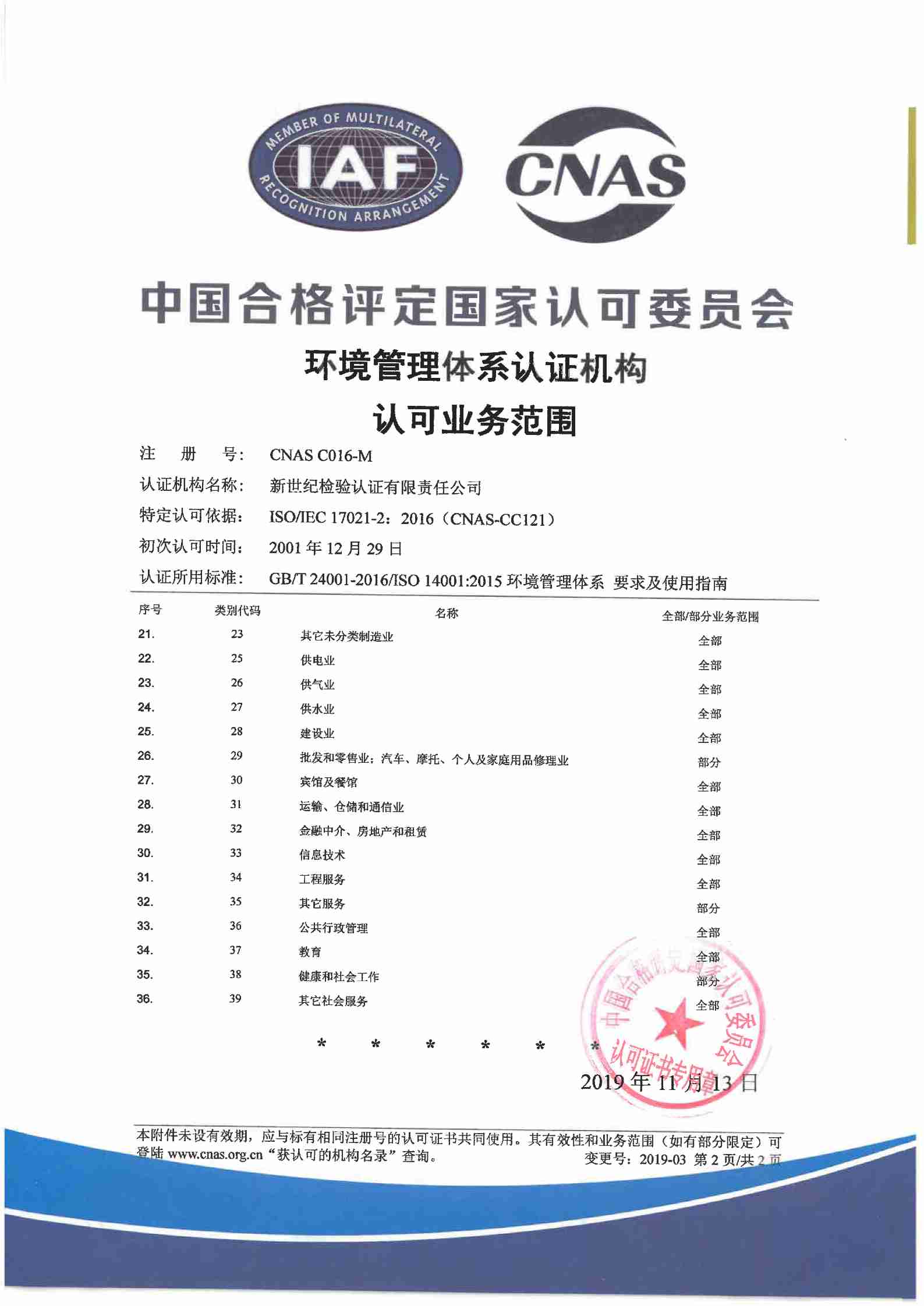 環(huán)境管理體系認證機構(gòu)認可證書(二) |