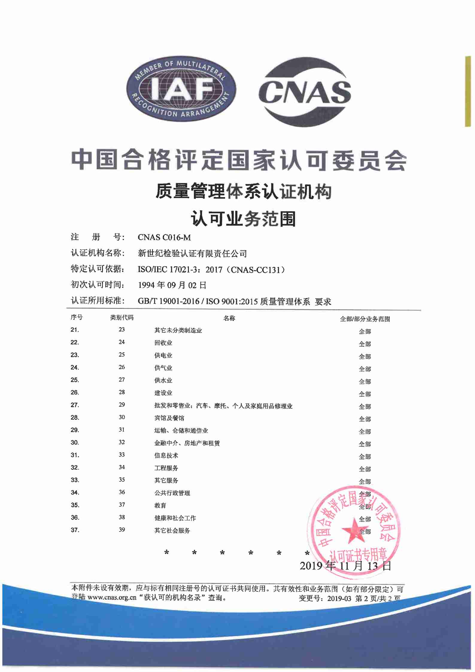 質(zhì)量管理體系認證機構(gòu)認可證書(二) |