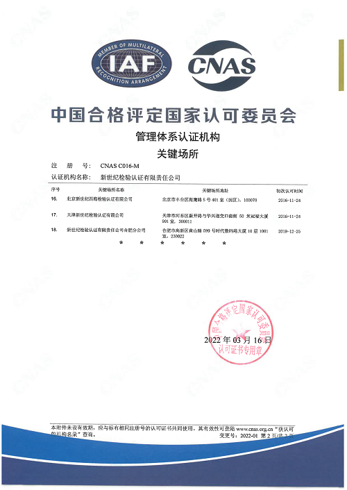 管理體系認證機構(gòu)關(guān)鍵場所(二) |