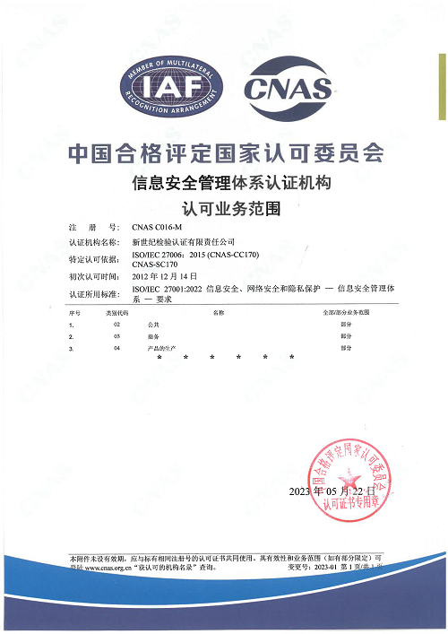 信息安全管理體系認證機構(gòu)認可證書 |