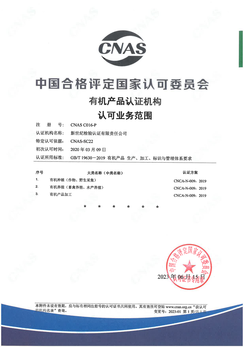 有機產(chǎn)品認證機構(gòu)認可證書 |