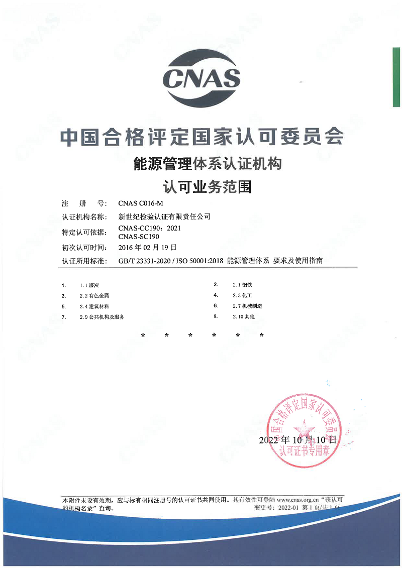 能源管理體系認證機構(gòu)認可證書 |