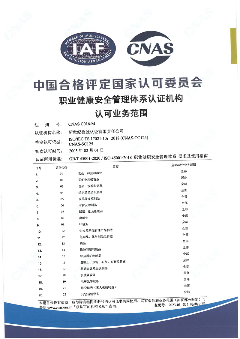 | 職業(yè)健康安全管理體系認證機構(gòu)認可證書(一) |