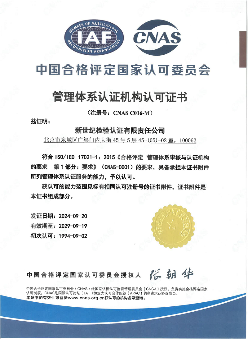 管理體系認證機構(gòu)認可證書 |