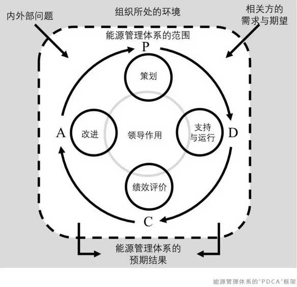 ISO 50001提供了一個方法框架,用于開發(fā)有效的能源管理系統(tǒng),與其他ISO管理體系標準一樣,能源管理體系遵循“計劃-執(zhí)行-檢查-行動”(PDCA)流程,以實現(xiàn)持續(xù)改進。