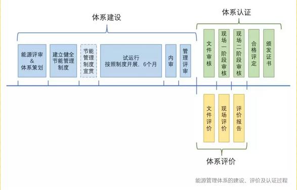 用能單位開展能源管理體系工作,通常包括:體系建設(shè)、認證或評價、持續(xù)運行和不斷提升的過程。