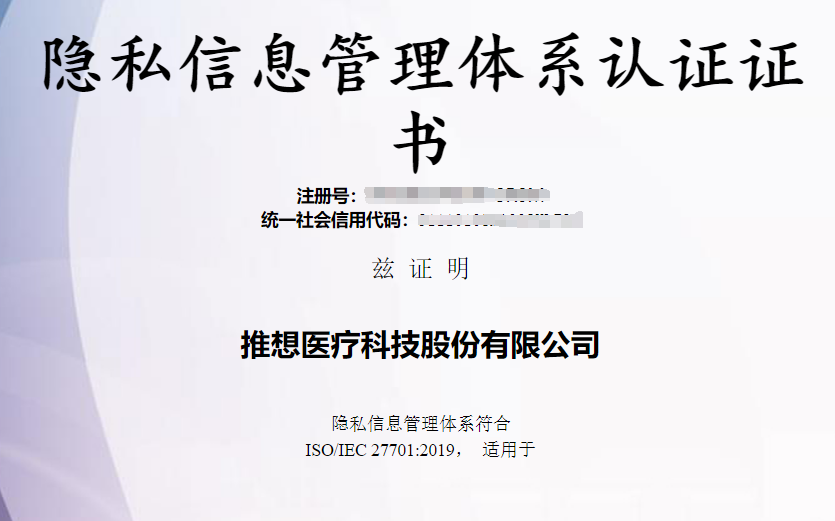 安全保護(hù)再上新臺(tái)階!推想醫(yī)療獲ISO27701隱私信息管理體系證書(shū)